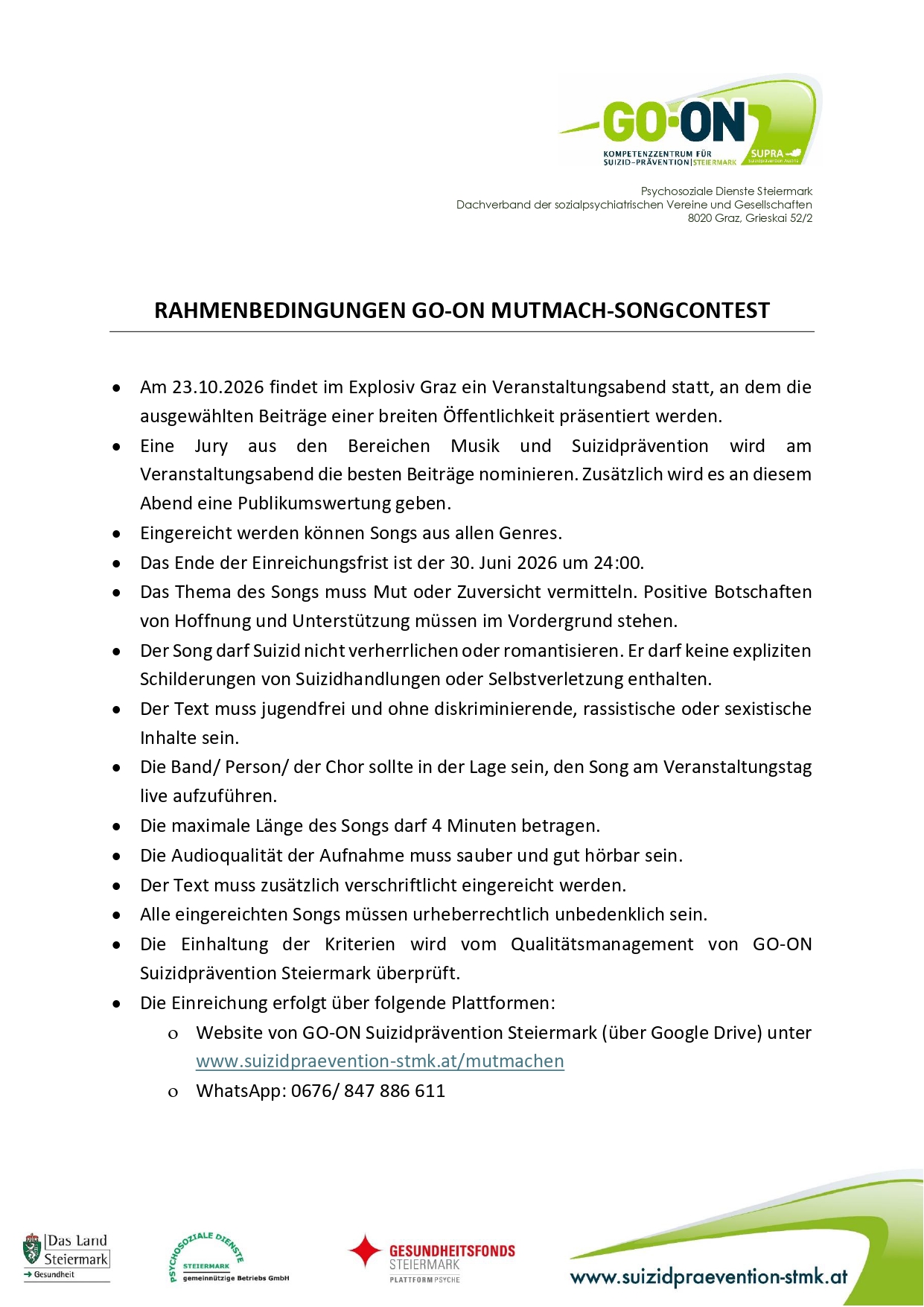Anlässlich des Welttages der Suizidprävention veranstaltet GO-ON Suizidprävention Steiermark den GO-ON Mutmach-Songcontest.