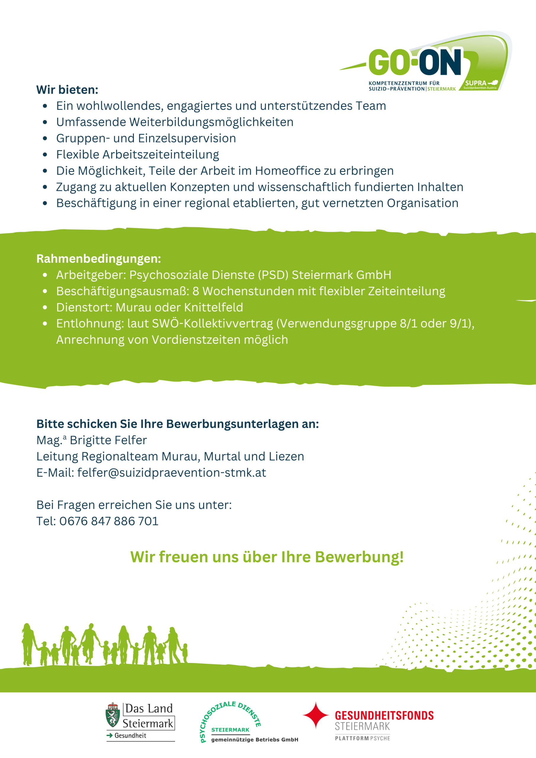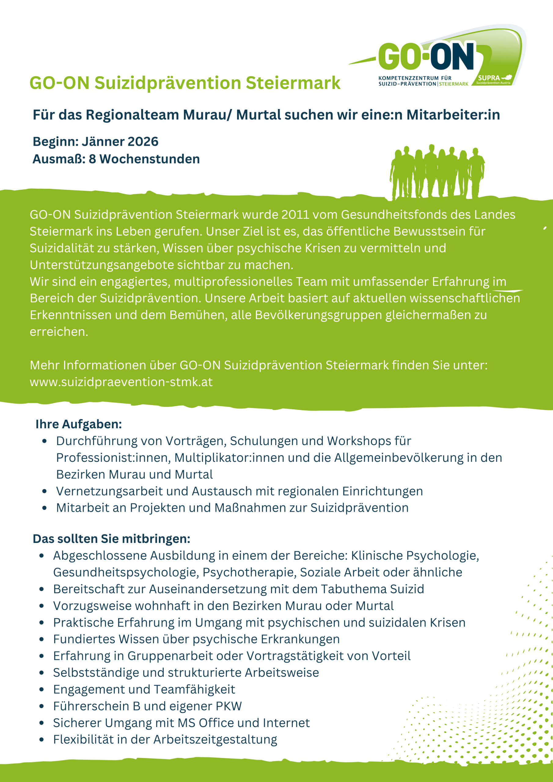Eine aktuelle Stellenausschreibung für das Team Murau/Murtal finden Sie hier.